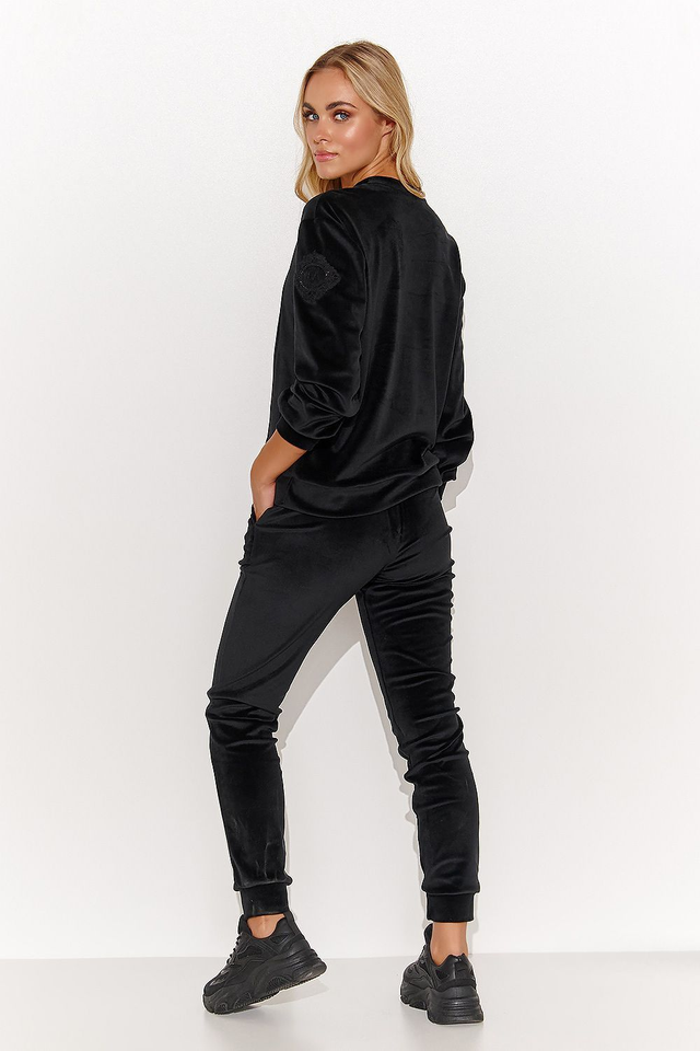elegante e femminile, questo set di tute in rete di velluto combina comfort accogliente e stile chic. Questo set unico si distingue per gli orli che portano un tocco di lusso. La felpa è infilata sopra la testa e ha una scollatura a cuore che enfatizza le clavicole. Ha anche maniche lunghe. Una delle maniche è decorata con un elegante logo Makadamia, che aggiunge originalità all'insieme. I pantaloni hanno una gamba affusolata terminata da un cordoncino all'orlo. Inoltre, le pratiche tasche laterali scivolano ai lati dei pantaloni, il che aggiunge funzionalità a questo set. Questo set è perfetto per molte occasioni. La magia sta nei dettagli, cioè negli accessori che scegli per abbinarlo. Puoi indossarlo tutti i giorni, al lavoro o la sera, pur mantenendo il tuo stile unico.
