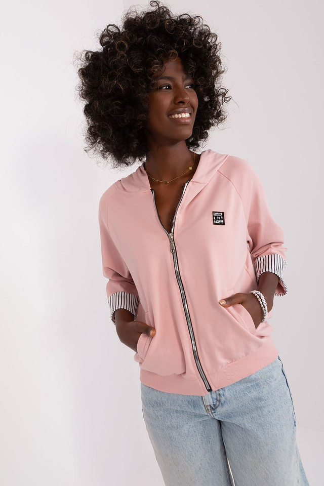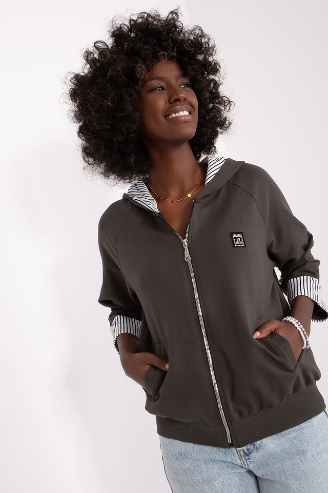 corta è l'opzione perfetta per tutti i giorni. Realizzato in morbido cotone, offre una vestibilità comoda. Il motivo liscio gli conferisce un tocco versatile, mentre le maniche a 3/4 con revers aggiungono stile. La felpa presenta un comodo cappuccio, cerniera e tasche con cerniera, che la rendono una scelta funzionale e alla moda. È l'opzione perfetta per le giornate più fredde, quando hai bisogno di un capo comodo ed elegante da indossare tutti i giorni.