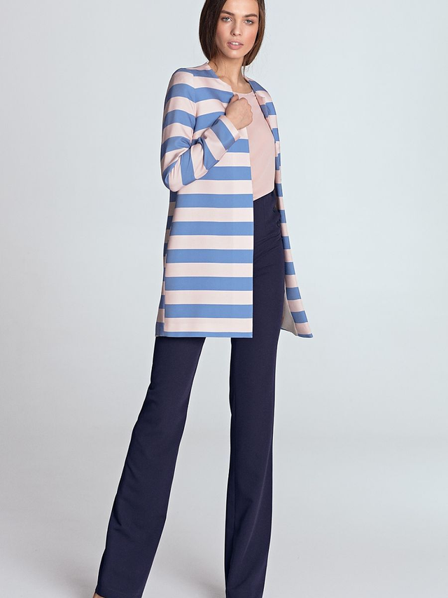 Una giacca lunga dal taglio semplice e classico con una scollatura semicircolare. La giacca completerà perfettamente un look primaverile per il lavoro ed è perfetta per uno stile quotidiano e casual.