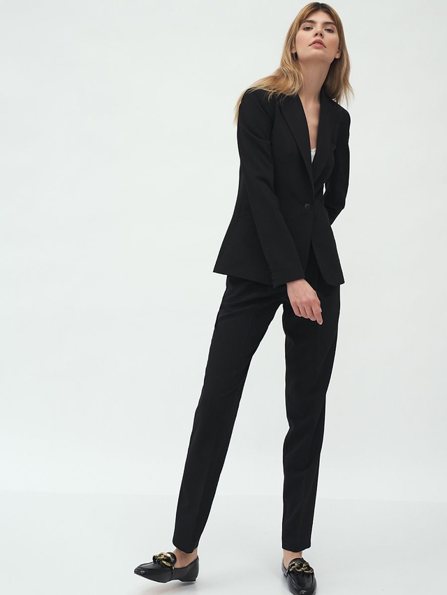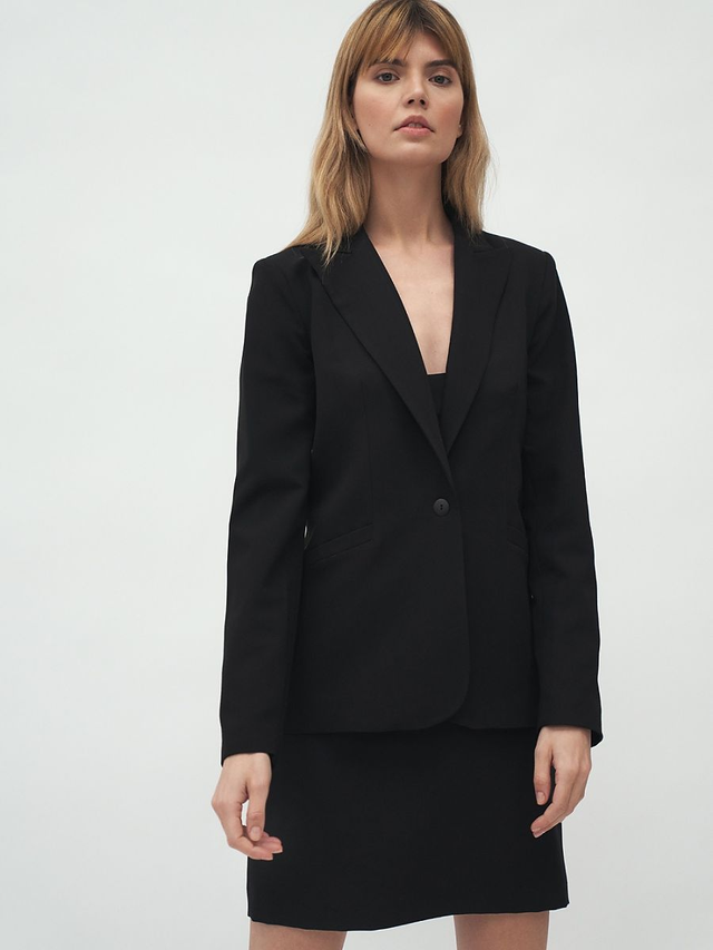 Una classica giacca slim-fit è il complemento perfetto per un outfit da ufficio, sia abbinata a pantaloni che a una gonna. La giacca ha una chiusura a un bottone, che sottolinea la vita e allunga la silhouette. Abbinalo ai pantaloni dello stesso colore e a una camicetta a contrasto per completare il look! La giacca ha una fodera e bottoni alle maniche.
