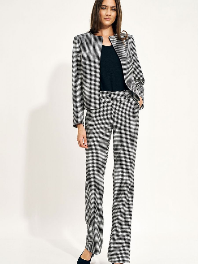 Una giacca corta dal taglio dritto con un motivo peplite alla moda è il complemento perfetto per uno stile morbido da ufficio. Il minimalismo del taglio permette di creare abbinamenti efficaci con gonne o pantaloni sia ampi che a matita. Il materiale piacevole al tatto, con un tocco di viscosa, garantisce un elevato comfort. Insieme ai pantaloni della stessa fantasia, crea un insieme elegante.