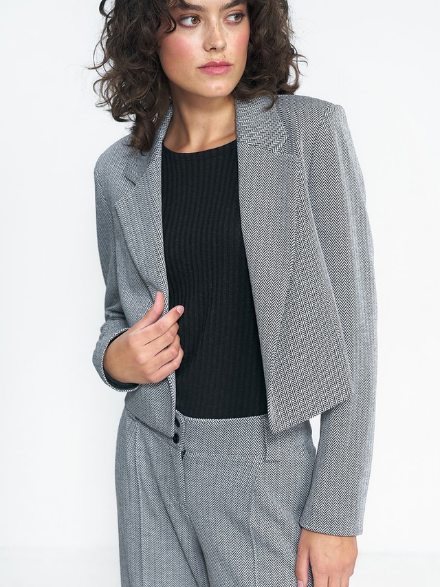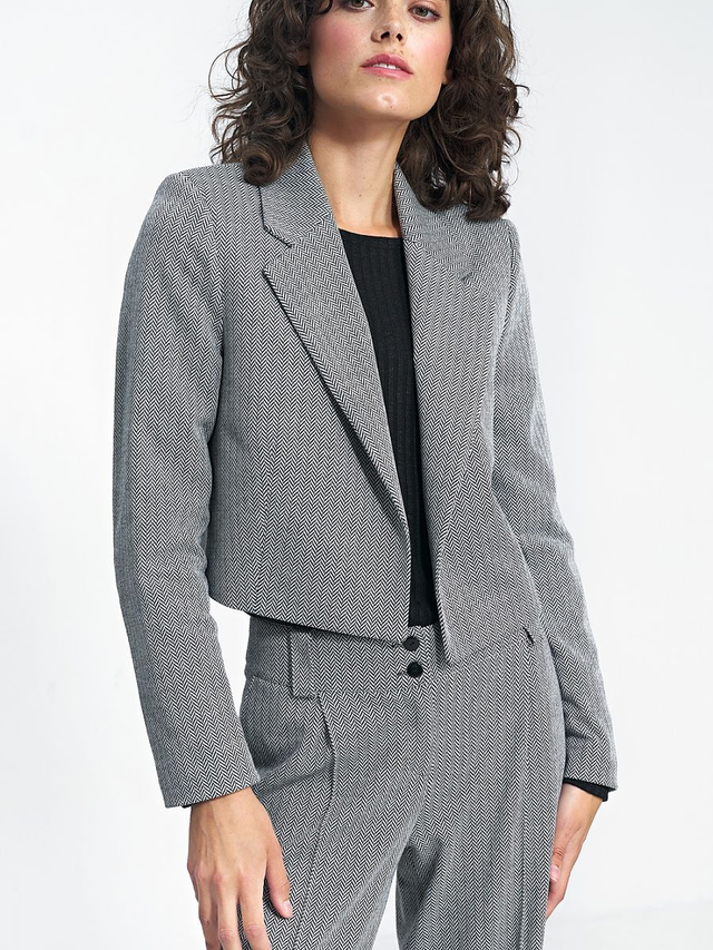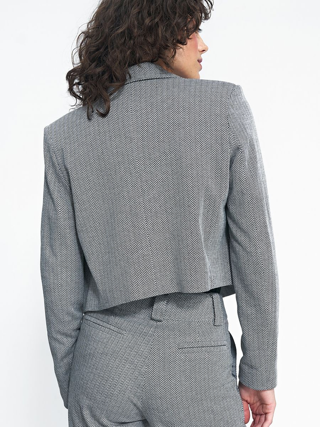 Un blazer corto è un must-have nel guardaroba di tutti! Si abbina non solo a outfit da ufficio e pantaloni della stessa fantasia per creare un total look, ma anche a jeans a vita alta e scarpe da ginnastica per riunioni informali. Il taglio e il colore della giacca sono versatili e si abbinano sicuramente a molti outfit.