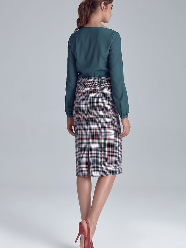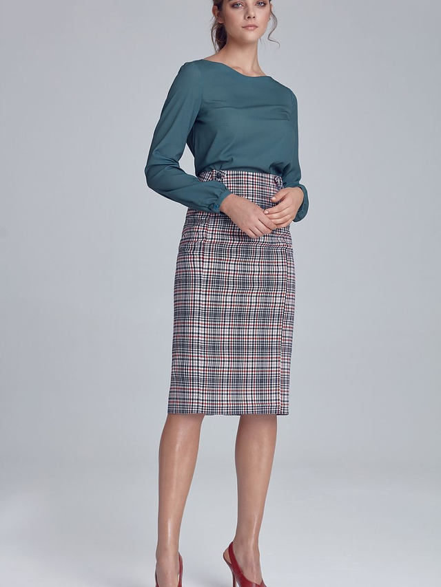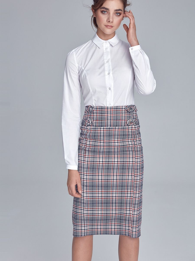 Una classica gonna a matita aggiornata con cinture rifinite con bottoni a pressione sui fianchi. Un morbido guardaroba essenziale in stile ufficio in una nuova edizione!