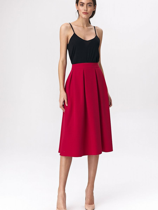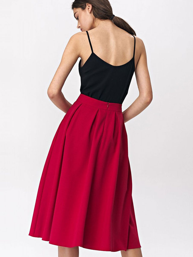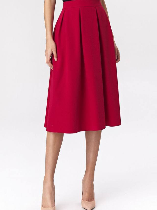 La gonna midi rossa svasata è un elemento perfetto per un look da ufficio morbido ed espressivo. Accoppiato con una camicia elegante può essere un'alternativa efficace ai classici outfit da ufficio, e abbinato a un top con le spalline è un outfit casual e femminile. Il materiale piacevole al tatto con un tocco di viscosa assicura un elevato comfort di vestibilità. Gonna con fodera, chiusa sul retro da una zip. Fodera: 100% poliestere. .