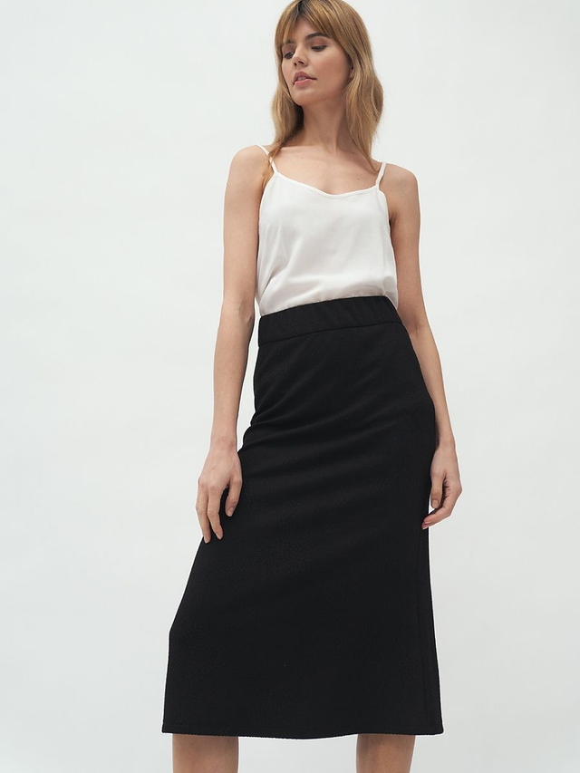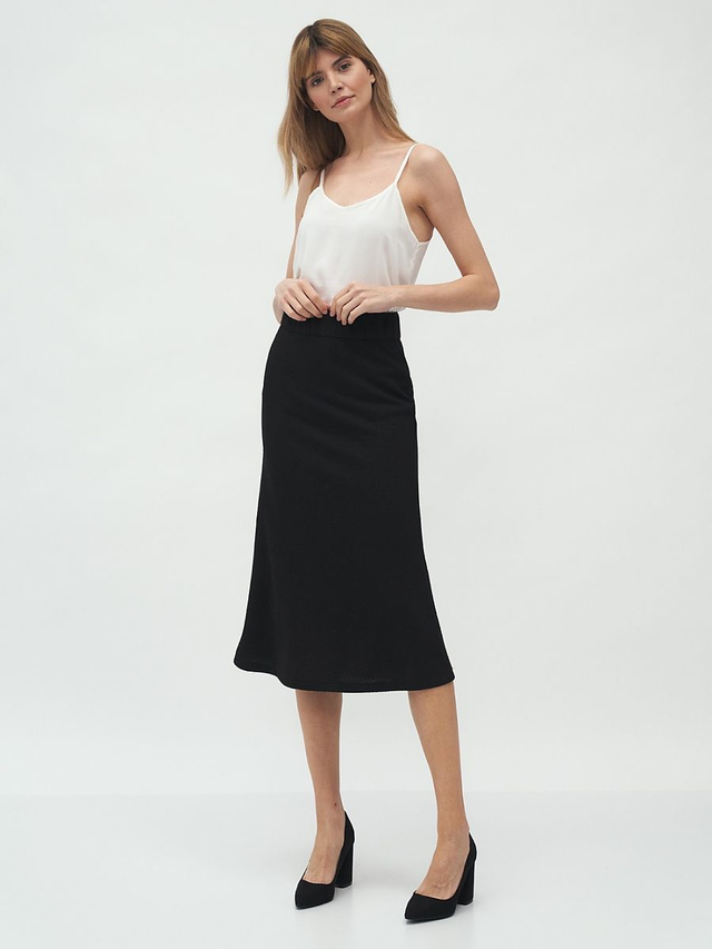 La gonna midi è una base per molti total look. Vi presentiamo un modello fatto di maglieria sottile, perfetto per lo styling primaverile. Modello aderente in vita e sui fianchi, leggermente svasato in fondo. La maglia strutturata ti farà abbinare con qualsiasi cosa! Da abbinare con t-shirt di cotone e sneakers, camicia bianca classica e tacchi a spillo. Modello senza tempo, must-have per la primavera 2021!