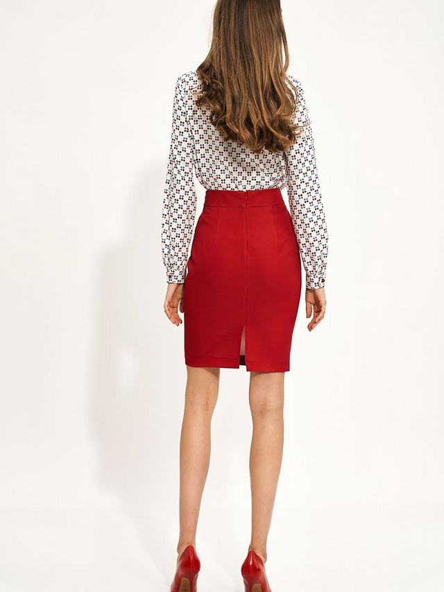 La gonna rossa aderente sarà una base perfetta per gli outfit da ufficio, ma anche per le uscite con gli amici, a seconda che la abbiniate a una camicia bianca o a un top nero satinato. La vita alta enfatizza il punto vita e la gonna a matita enfatizza i fianchi.