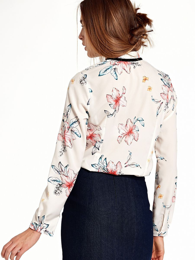Una classica camicetta a maniche lunghe aggiornata con un colletto drappeggiato al collo. Il modello ha un nastro di velluto aggiuntivo che può essere legato in molti modi.