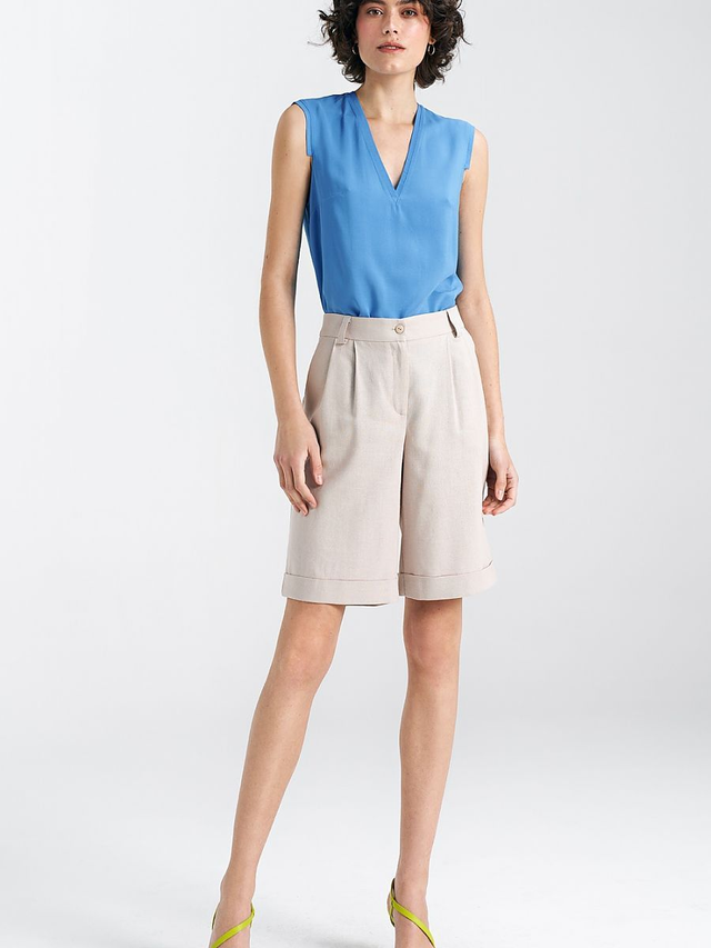 La camicetta dal taglio regolare colpisce per la sua semplicità ed eleganza. È realizzata in un piacevole tessuto di viscosa che garantisce comfort e libertà di movimento. La profonda ma sottile scollatura a V conferisce un tocco sofisticato all'insieme. Questo top senza maniche è la scelta perfetta per le giornate calde e aggiunge leggerezza e freschezza a qualsiasi outfit. Il dettaglio della spalla e della scollatura, estremamente femminile ed elegante, sotto forma di una delicata piega, conferisce alla blusa un fascino sottile e un carattere unico. Il colore blu, noto anche come blu capri, conferisce alla blusa una straordinaria profondità e un'espressione unica e alla moda. È la scelta perfetta per chi apprezza sia il classico che un tocco di stravaganza. Questa blusa, infilata sopra la testa, sarà l'aggiunta perfetta al vostro guardaroba, aggiungendo uno stile unico a qualsiasi outfit femminile.