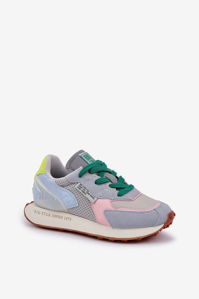 sportive Eleganti sneakers da donna del marchio Big Star. Impostato su una suola in gomma, che offre non solo comfort ma anche un'eccellente ammortizzazione e aderenza, fondamentale per chi conduce uno stile di vita attivo. Grazie a ciò, sia che tu stia camminando per la città, allenandoti in palestra, questo modello garantisce non solo comfort ma anche sicurezza ad ogni passo. La soletta MEMORY FOAM SYSTEM ricorda la forma del piede, assicura un'ottima vestibilità, assorbe gli urti, è resistente alla deformazione, permette l'evaporazione dell'umidità e la regolazione della temperatura.