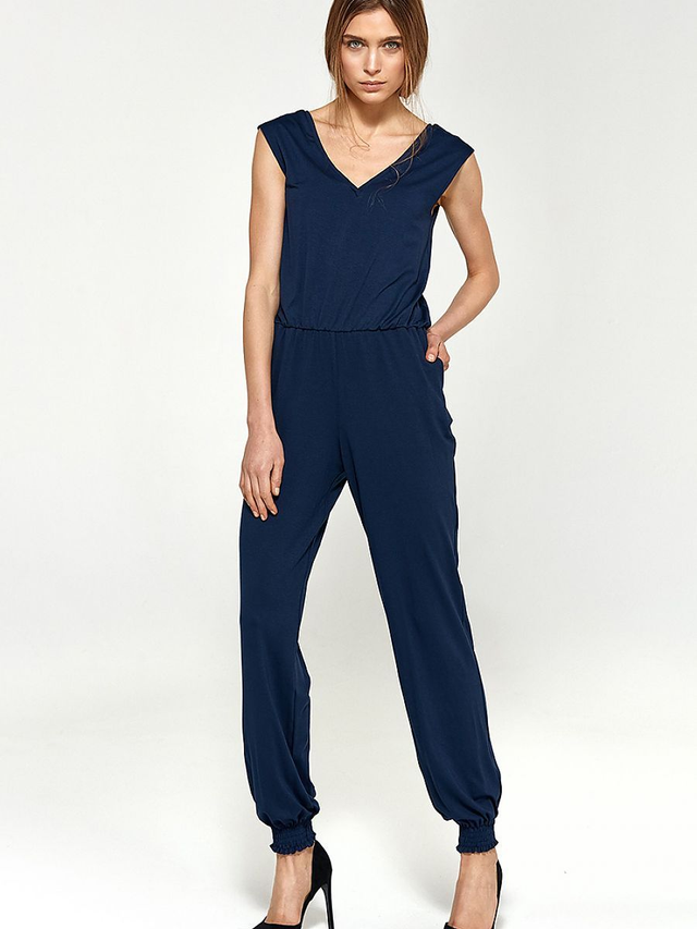 Comoda tuta senza maniche con scollo a V e caviglie a coste. Perfetto per i giorni caldi e le feste folli fino al mattino! La tuta si chiude con una zip, che si trova sulla schiena.