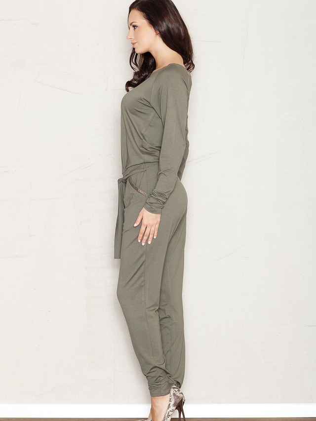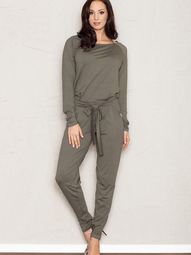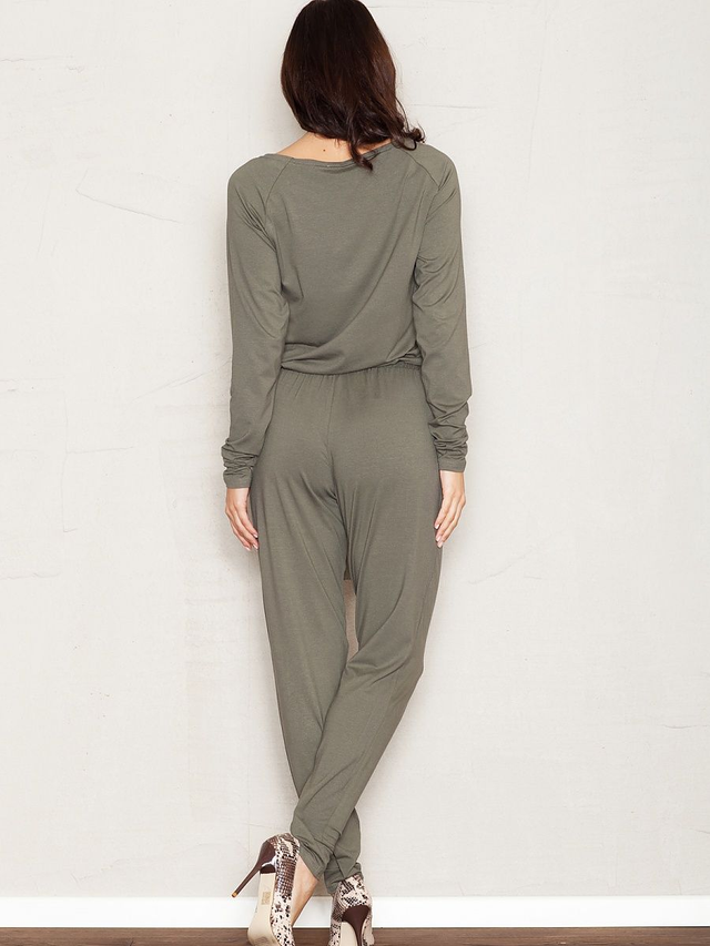 Una tuta alla moda ed estremamente femminile realizzata in morbida viscosa con elastan. Il fondo consiste in pantaloni lunghi con tasche. Le gambe sono affusolate, con un elastico in vita e una cravatta giocosa. Il top è una camicetta più ampia con maniche lunghe e una scollatura a metà. L'insieme è un'ottima soluzione sia per una passeggiata, sia per un weekend fuori città.