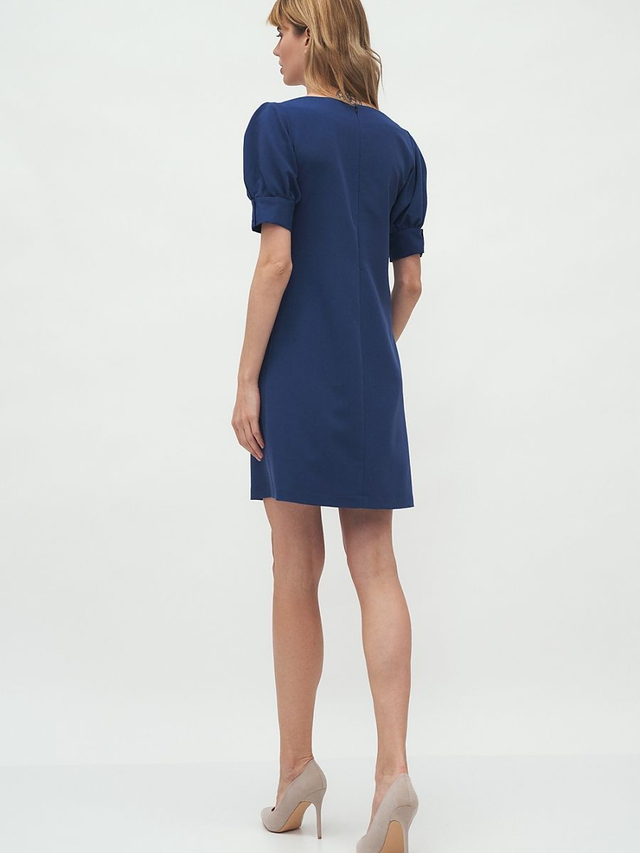 L'abito semplice ma elegante con maniche a buffet è ideale per le donne che apprezzano la semplicità. Una delicata scollatura a barca gli conferisce sottigliezza. L'abito non ha fodera, quindi vi sentirete a vostro agio. È una scelta ideale per un look quotidiano per il lavoro o un incontro d'affari.